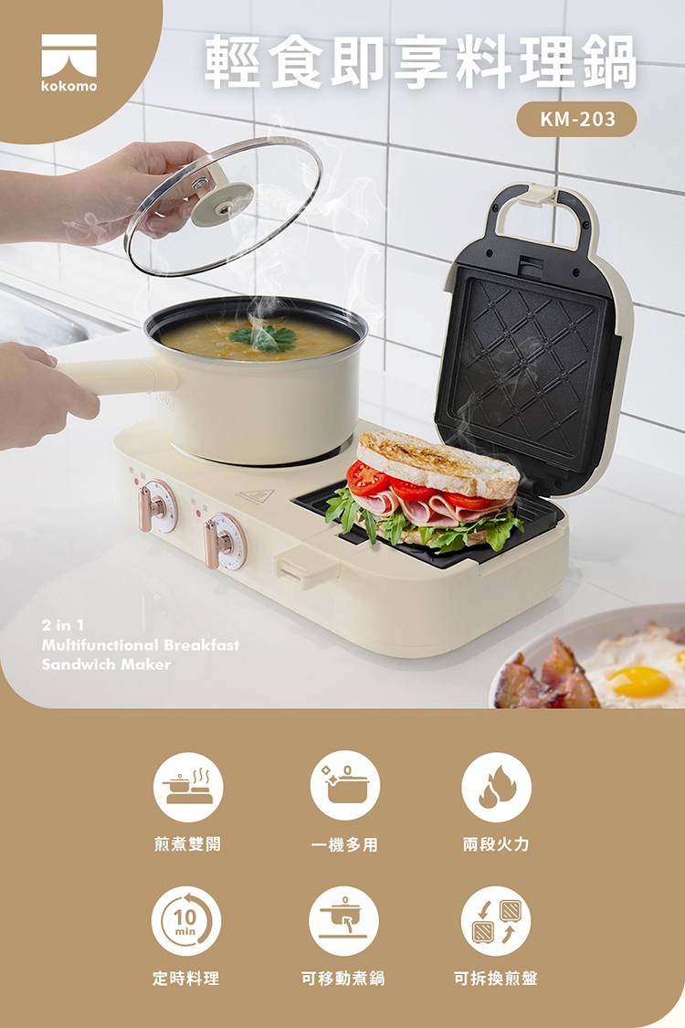 【kokomo】輕食即享料理鍋/熱壓三明治機 KM-203