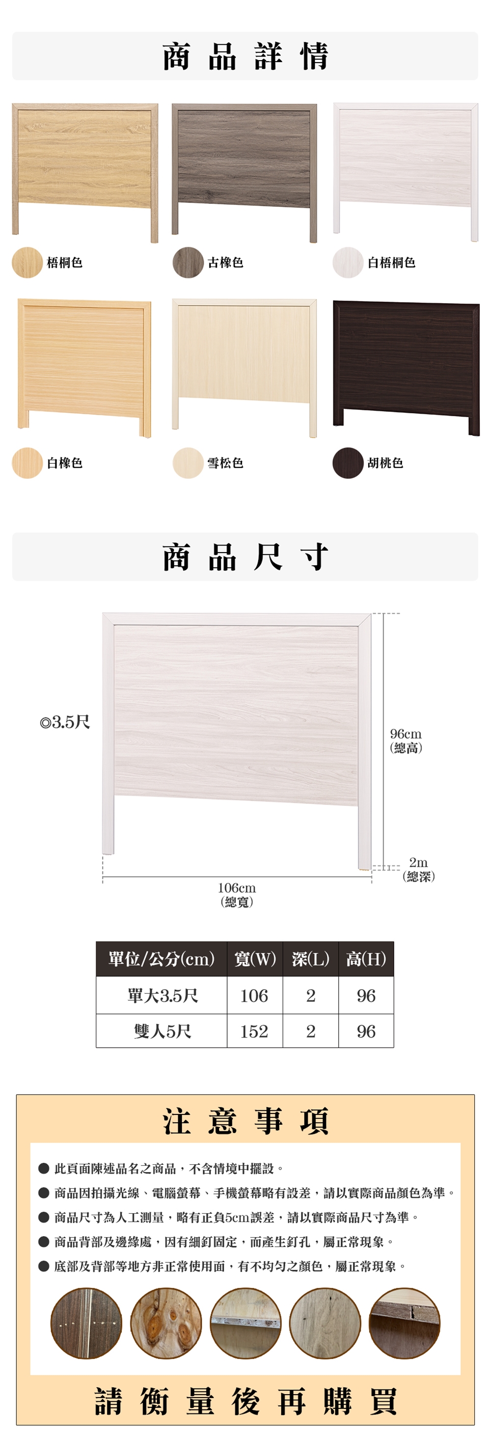 ※此賣場僅販售 簡約素面床頭片(單大3.5尺)※
