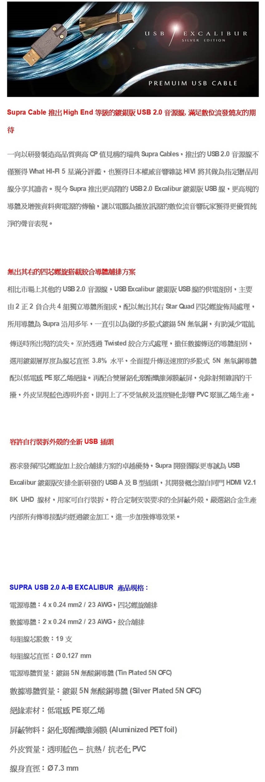 ■ Supra Cable 推出High End 等級的鍍銀版USB 2.0音源線, 滿足數位流發燒友的期待