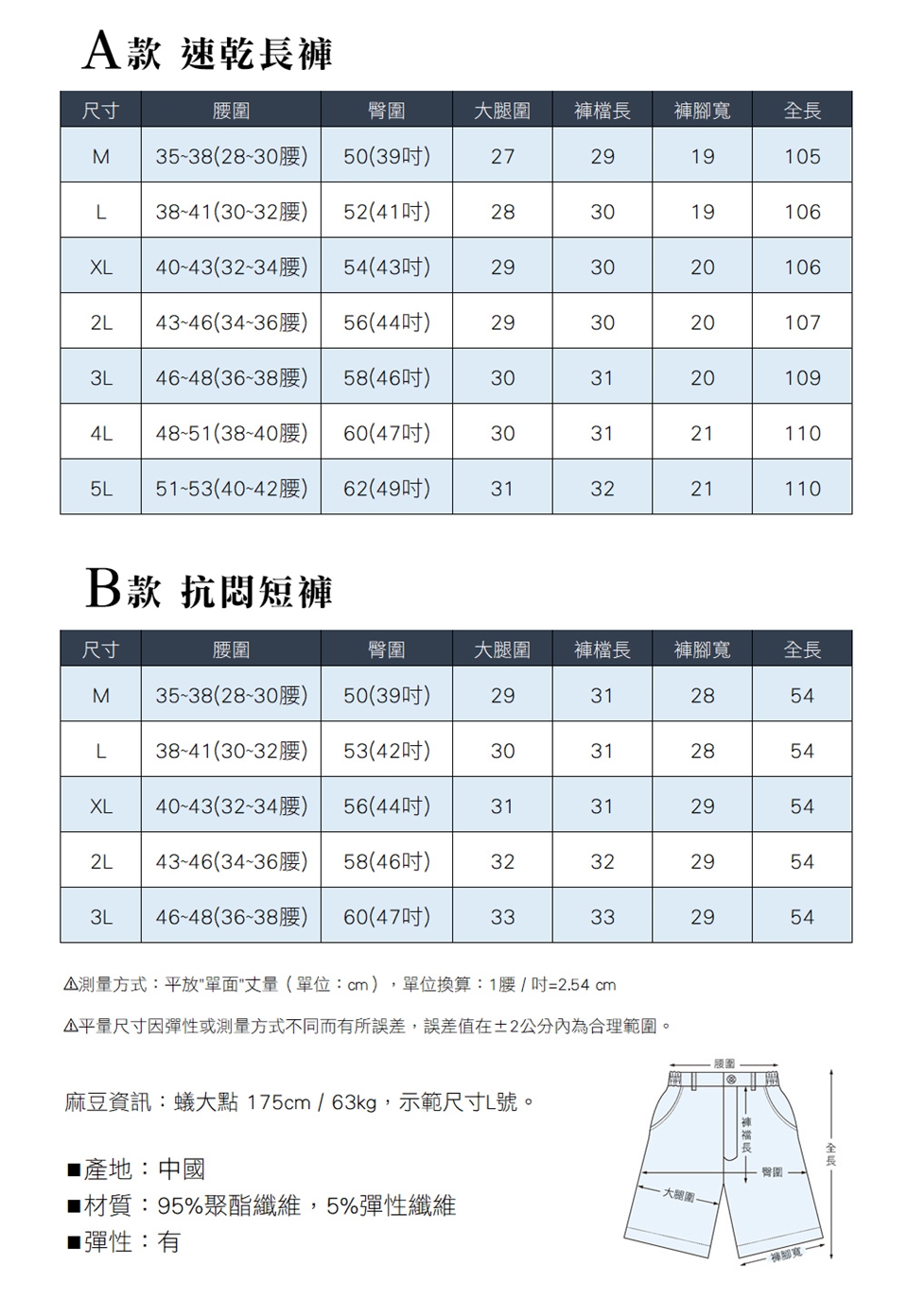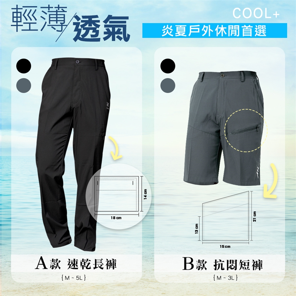 百搭二款:A款 速乾長褲 / B款 抗悶短褲