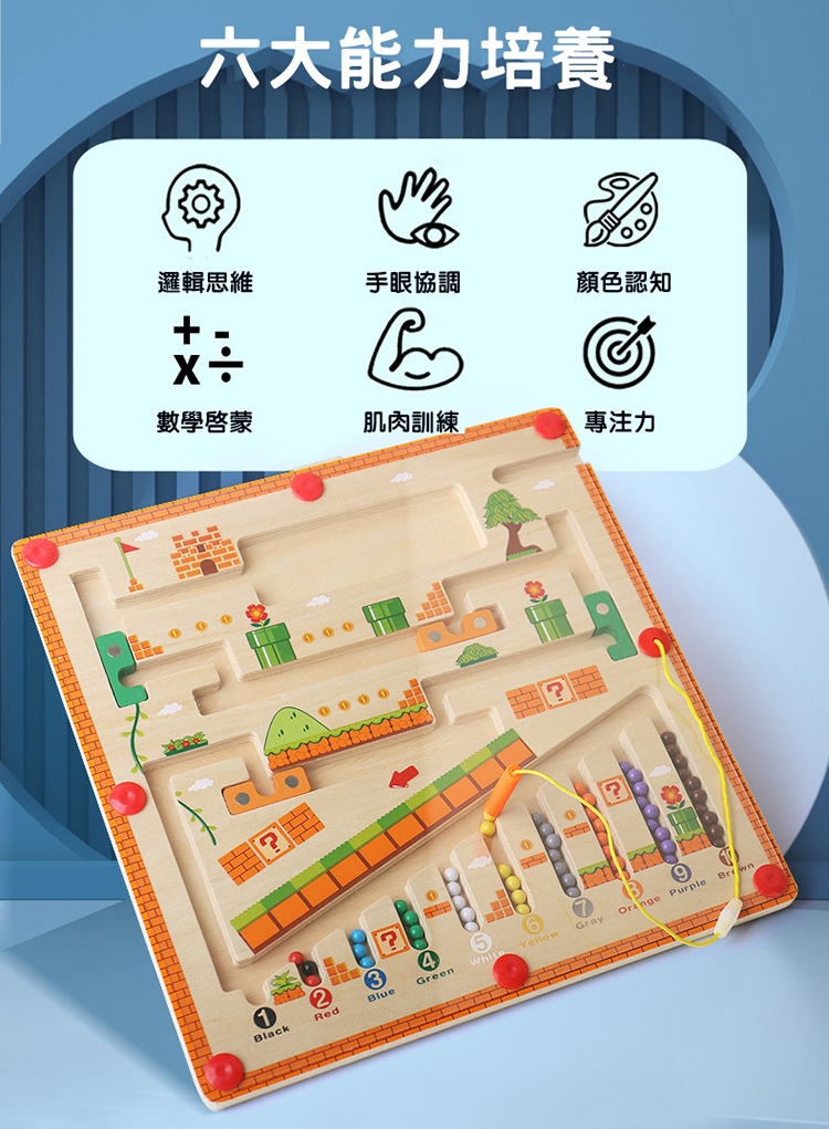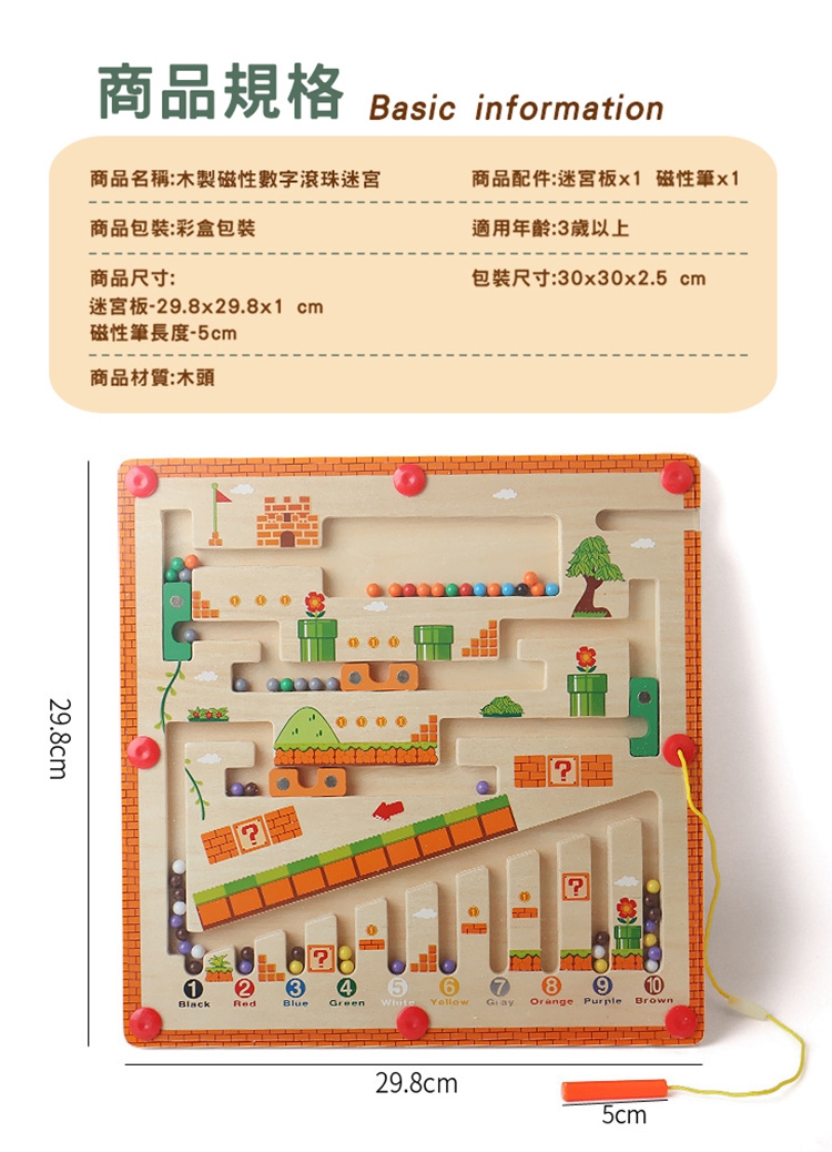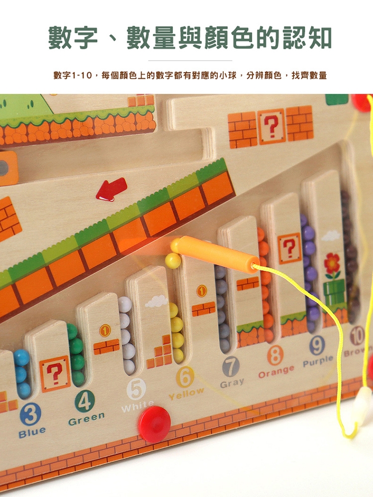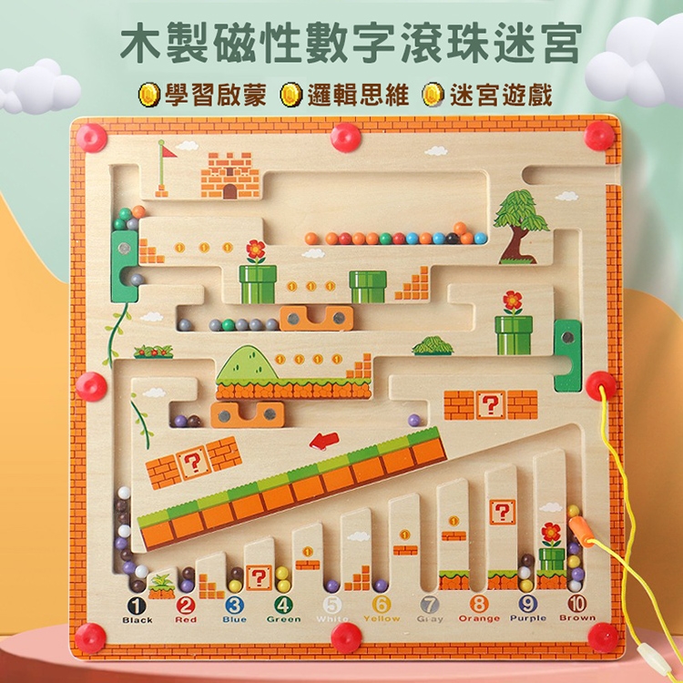 【品名】木製益智磁性數字滾珠迷宮/走珠迷宮/趣味機關運珠台(附運珠筆)