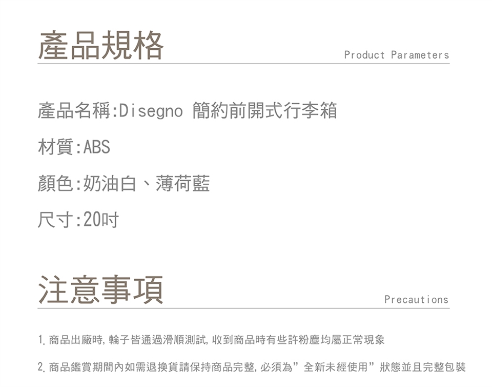 商品名稱:DISEGNO 20吋簡約前開式行李箱