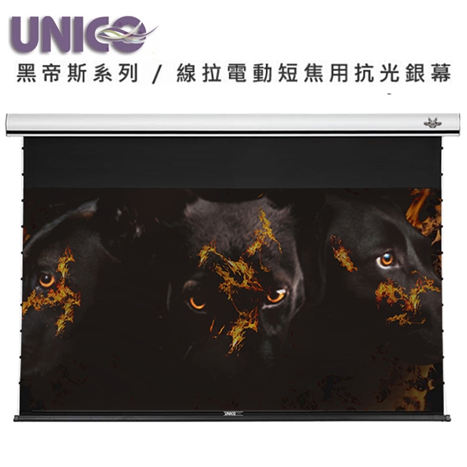 UNICO攸尼可 黑帝斯系列 HF-WUN120HD 頂級4K地拉式線拉電動抗光幕120吋16:9 家庭劇院投影機幕首選