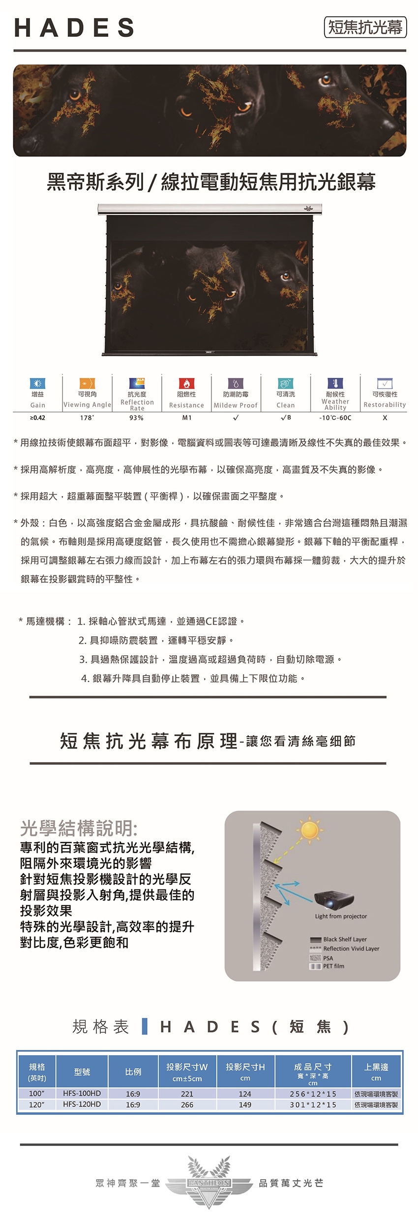 ● 採用高解析高亮度高伸展高畫質光學布幕