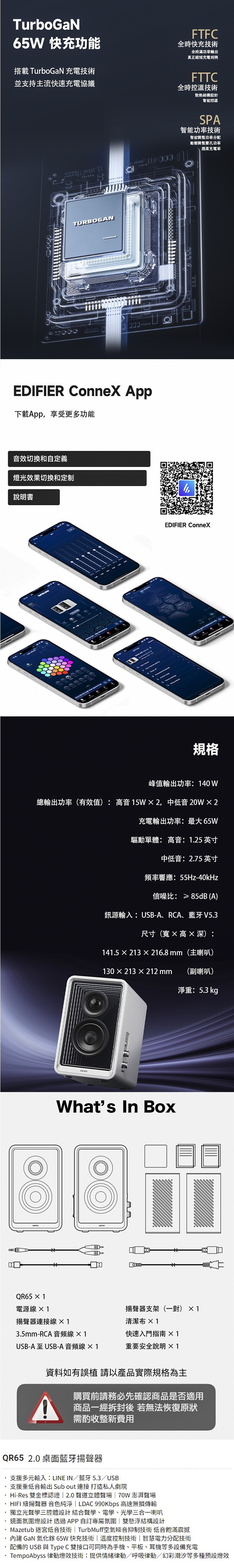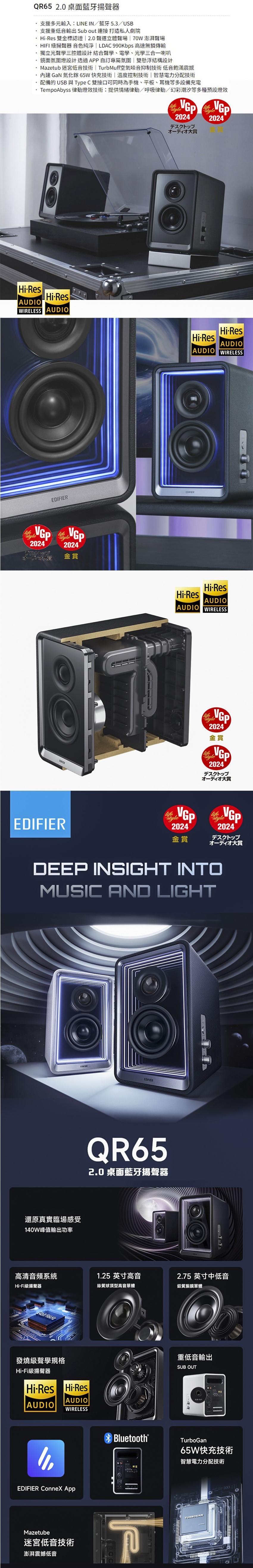EDIFIER 漫步者 QR65 2.0 桌面藍牙揚聲器 公司貨