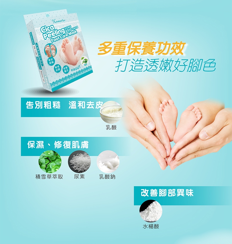 5. 本商品含有酸類成分,腳部有傷口、濕疹、皮膚炎、嚴重腳氣、孕婦、哺乳期、蠶豆症、糖尿病患者和孩童請勿使用。使用後需塗抹防曬劑、一星期內避免腳部曝曬陽光、不要穿夾腳托、穿著襪子保護雙腳。