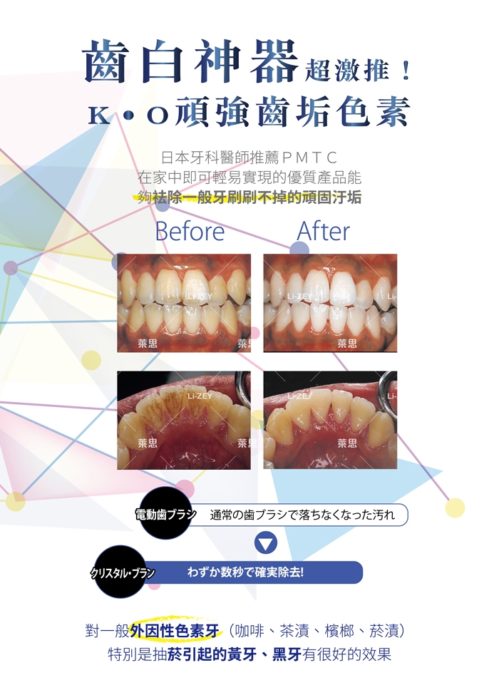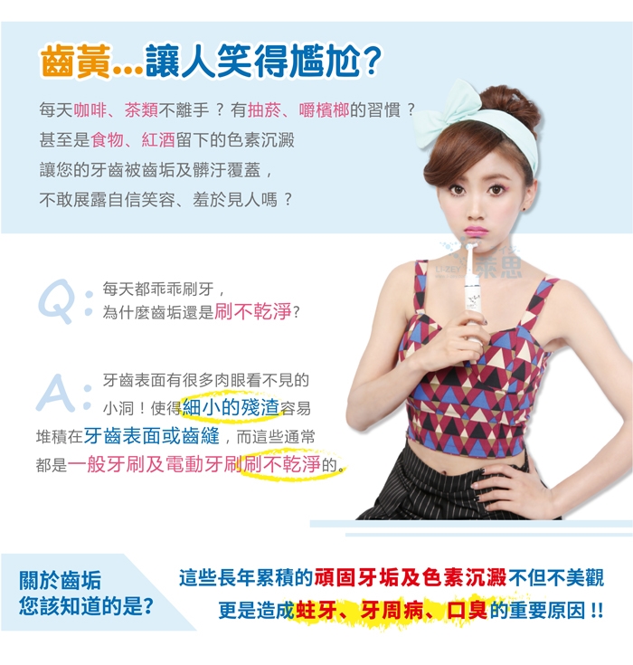 7.請勿使用在人工牙齒上,以免傷害人工牙
