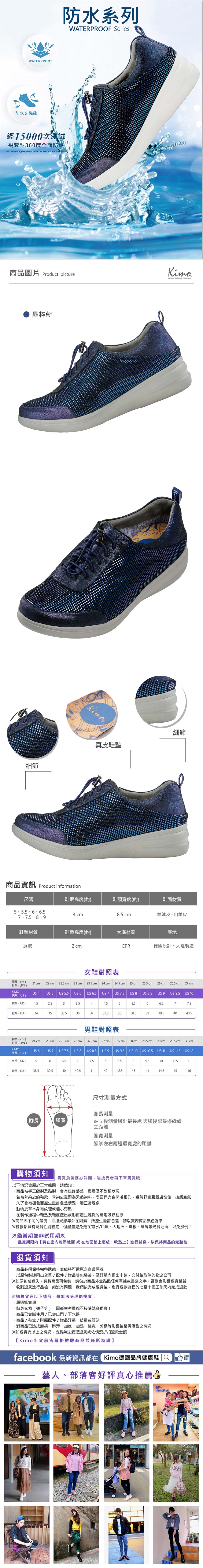 Kimo專利防水-人魚姬水波感真皮束口機能防水鞋 女鞋 (晶粹藍 KBCWF071386)