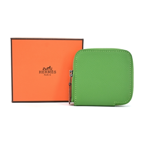 Hermes 愛馬仕 Silk In Epsom 小牛皮拉鍊絲巾零錢夾(1K竹綠)