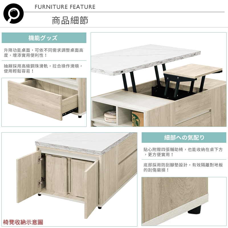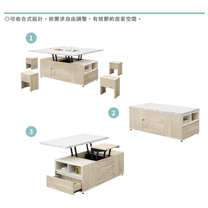 機能性升降功能,可依不同需求調整桌面高度,增添實用便利性!