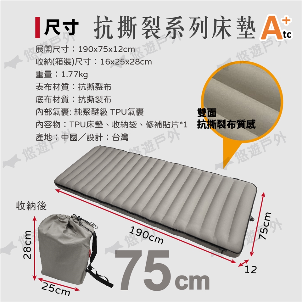 內容物:TPU床墊、收納袋、修補貼片*1