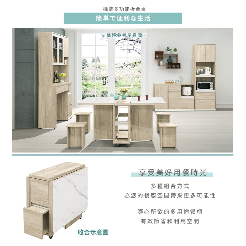 可依照空間需求不同選擇合適的折合桌展開方式,有效利用空間!