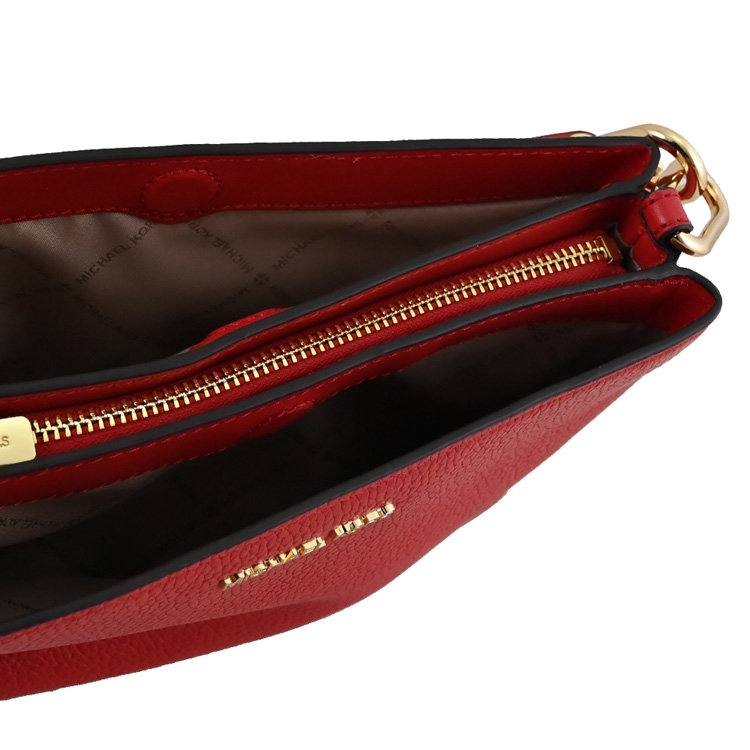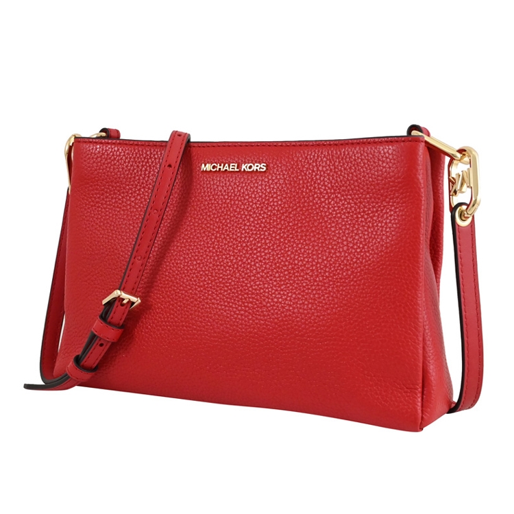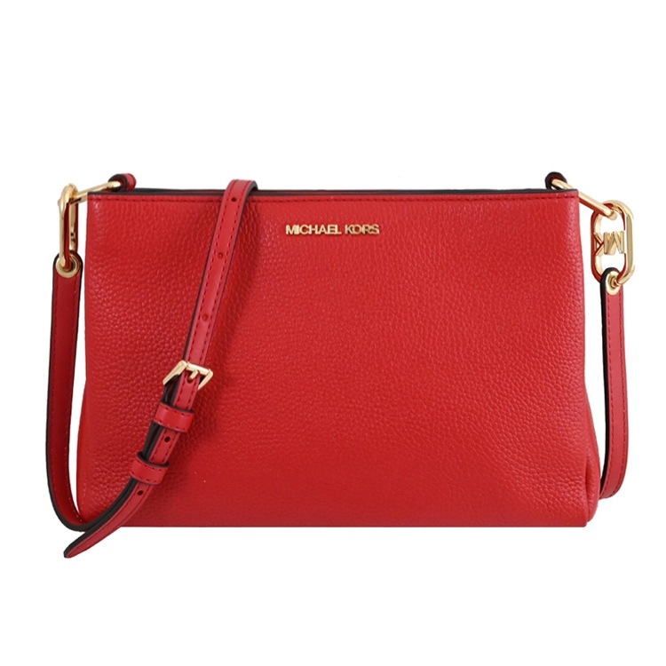 MICHAEL KORS 品牌(簡稱MK)成立於 1981 年是美國設計師同名的品牌;此款新款是經典三層斜背小包款式,採用浮雕金屬LOGO與荔枝皮革,雙磁扣式開口,中1拉鍊袋隔成三層袋,內有1內袋+1拉鍊袋,內可放中夾及手機等隨身小物,7段式斜背帶可調,出遊無負擔的小包款。