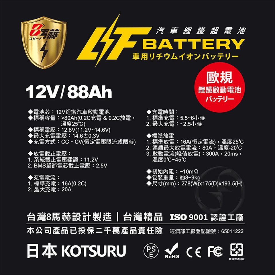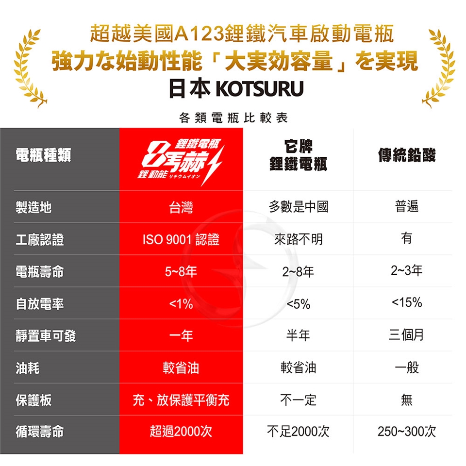 電池內阻低、輸出電流大、火星塞電火花大、點火速度快、油料燃燒充分,峰值馬力提升約4.5%,峰值扭矩提升約3%,比鉛酸電池降低5%的油耗。
