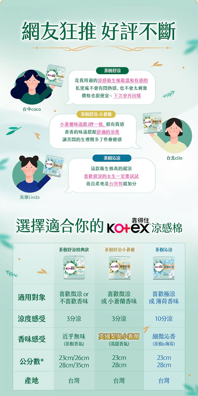 靠得住茶樹沁涼棉 抑菌28cm x 14片