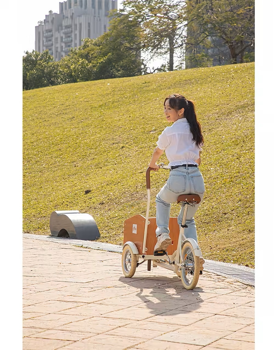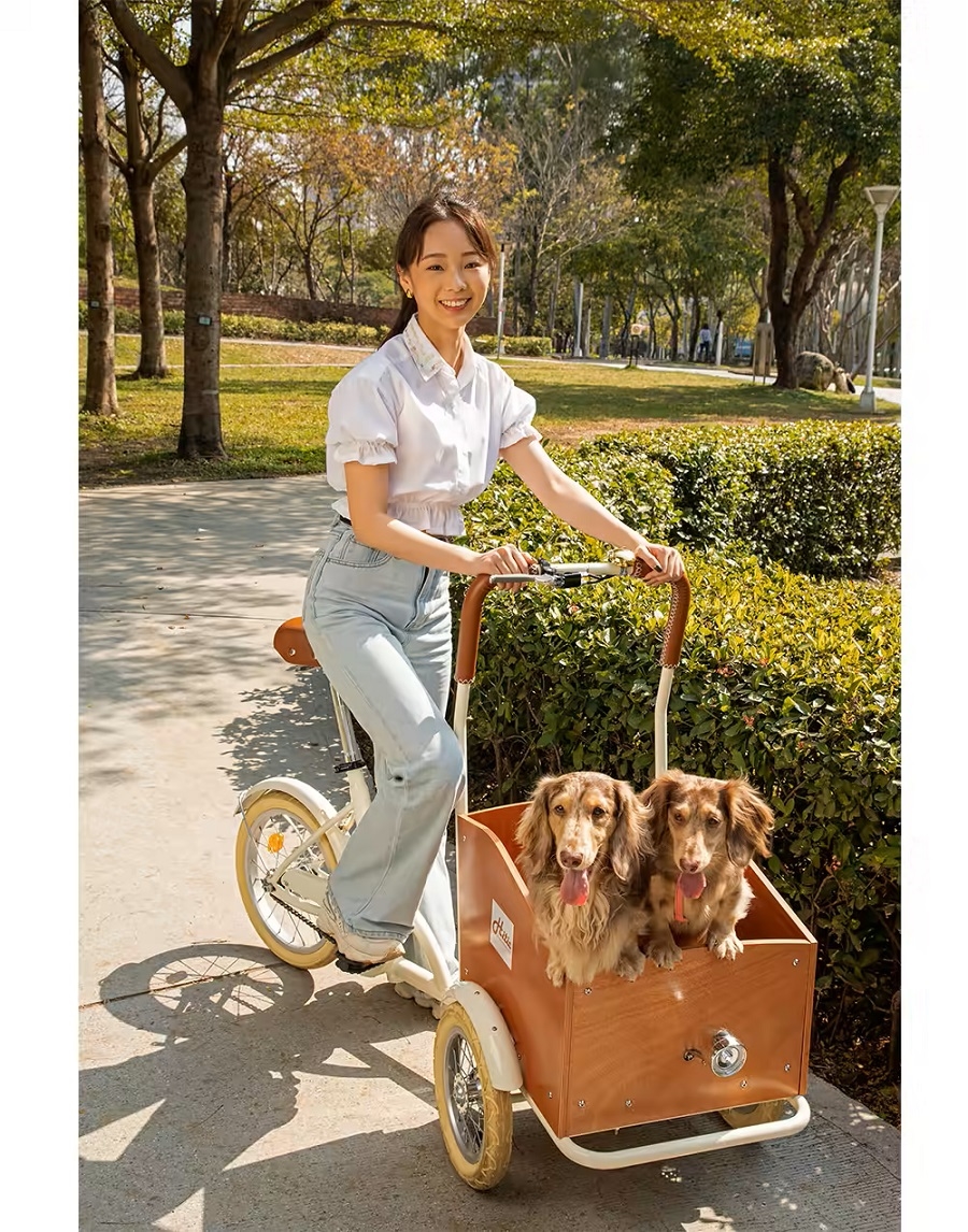 MID寵物三輪車系出工匠之手藝。以設計美感為概念融入生活實用為元素創造出台灣唯一獨家多元性三輪車。適合平時購物跟載寵物使用。歐洲CARGO大車底盤結構設計。讓前方原木木箱可容載40/公斤物件。並以一體式全車結構設計製造。讓最大整車乘載重量可達140公斤。