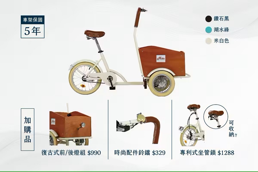 1.前面的木箱可載重達40公斤,騎乘者可以高達100公斤,整車載重約140公斤,車體保固5年,其他配件輪胎等非人為因素保固1年。