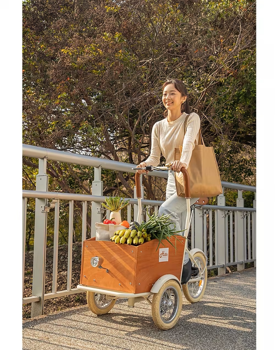 配製前兩輪双碟式煞車系統及後輪回踏腳煞車。讓制動性更加安全與敏銳。非常適合年輕人自騎或開店活動使用。也可以讓媽媽爸爸們及銀髮族購物使用。