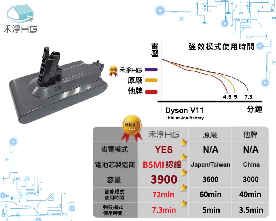 商品名稱:【禾淨家用HG】Dyson V11(SV14) 3900mAh 副廠吸塵器配件 鋰電池(螺絲式)