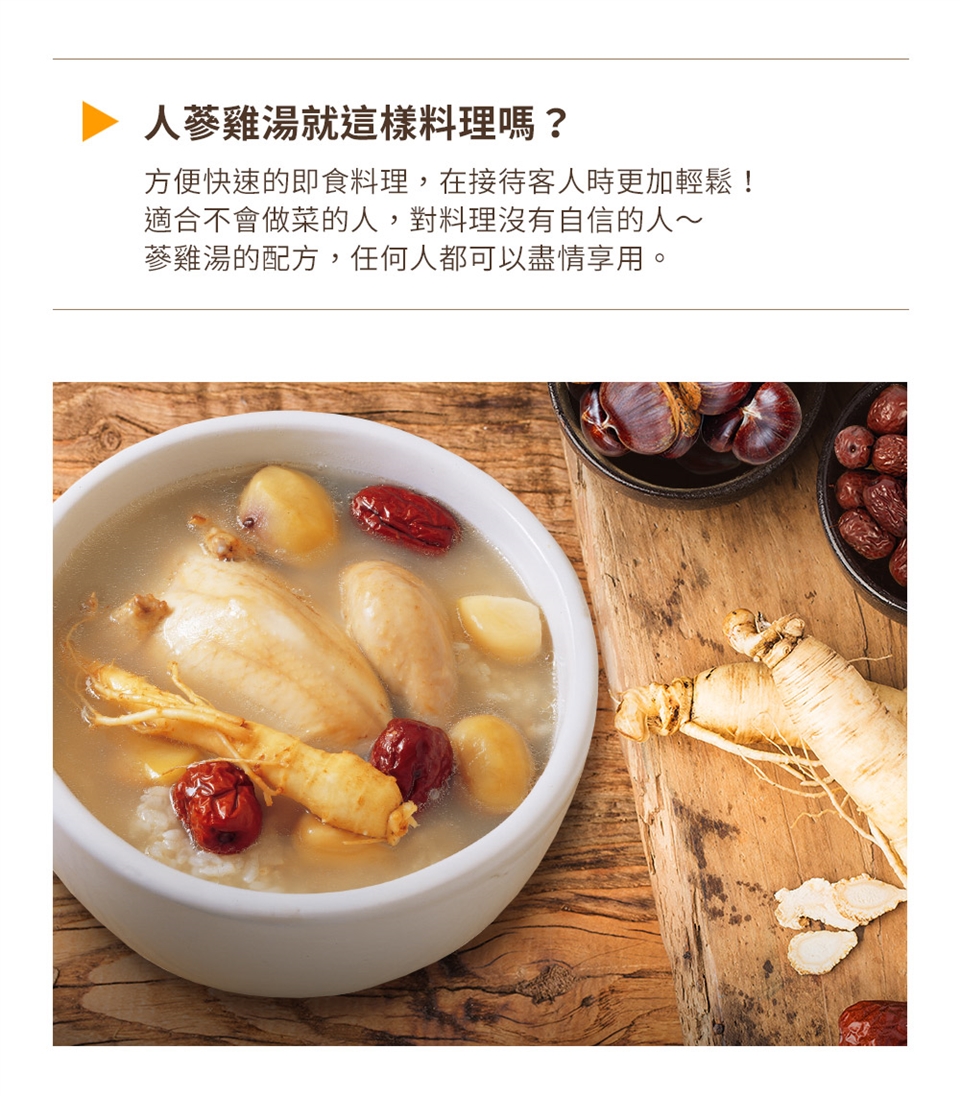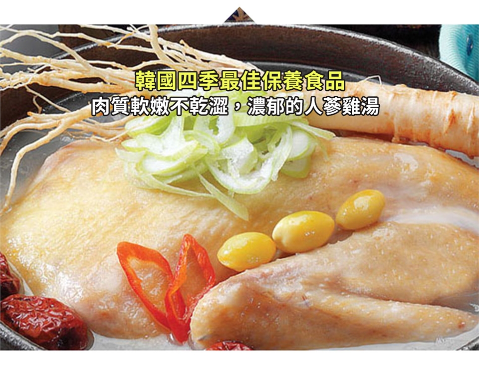 ▶ 韓國第一品牌人蔘雞湯 ▶ 使用整隻溫體雞肉製作 肉質鮮甜