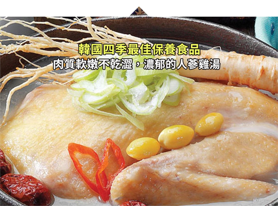 ▶ 韓國第一品牌人蔘雞湯 ▶ 使用整隻溫體雞肉製作 肉質鮮甜