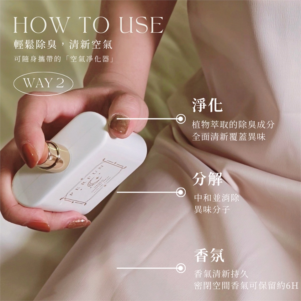(可依據您個人喜好,初次使用先按壓2至3下,待您熟悉香氣後再進行調整)