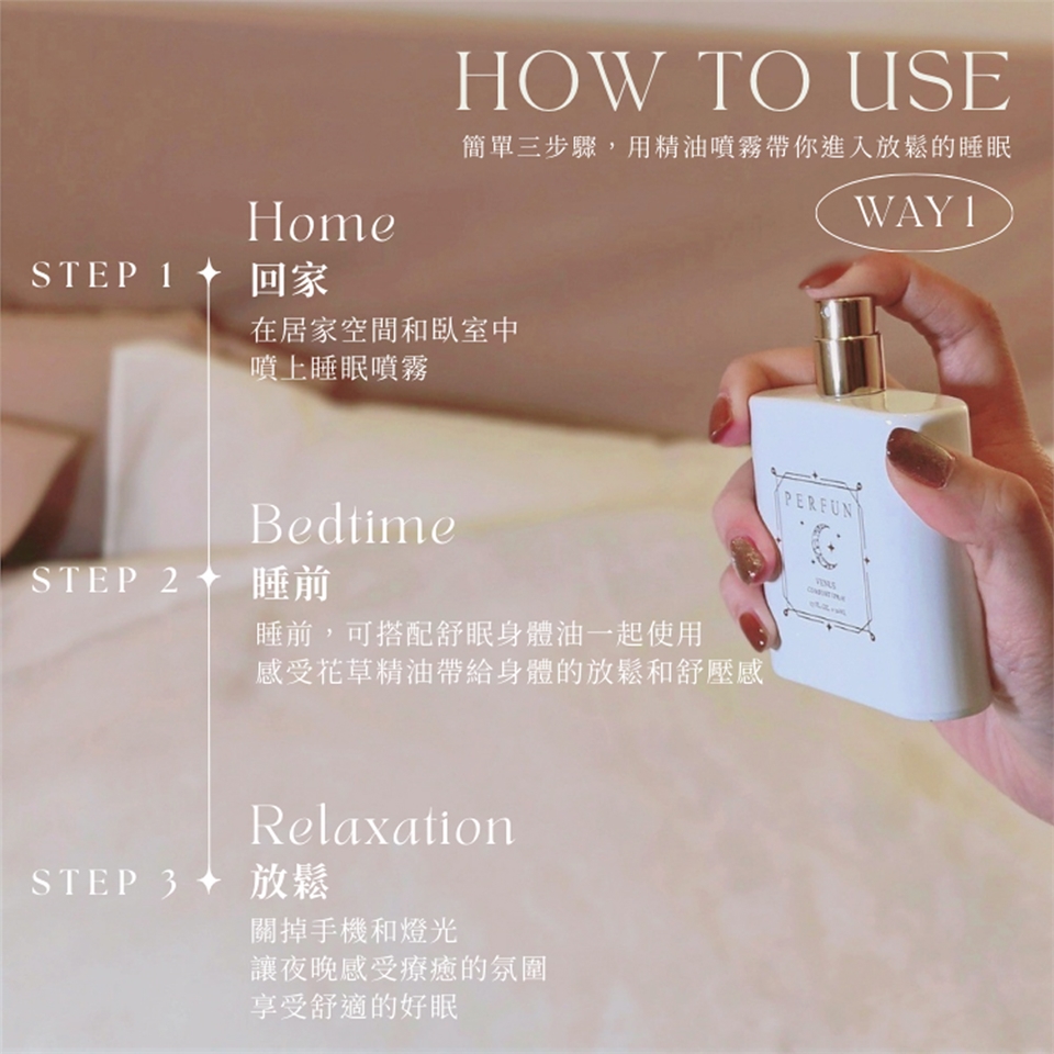 Way 1 「簡單三步驟,用精油噴霧帶你進入放鬆的睡眠」