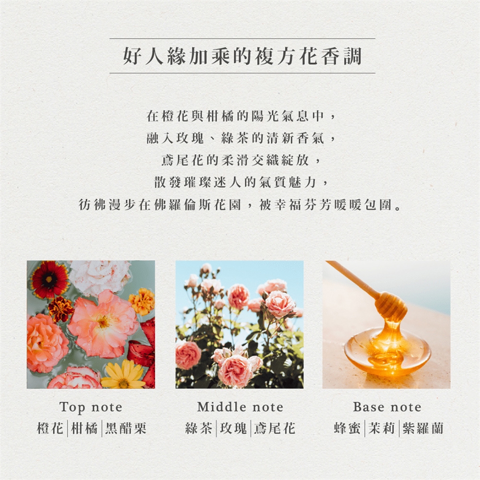 -品牌調配的精緻香氣,獨一無二的花香調,讓你擁有迷人自信的氣味