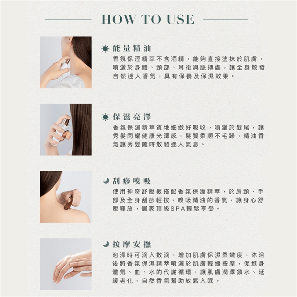 -添加多種精油,運用大自然的香氣,保養的同時能達到紓壓及療癒身心