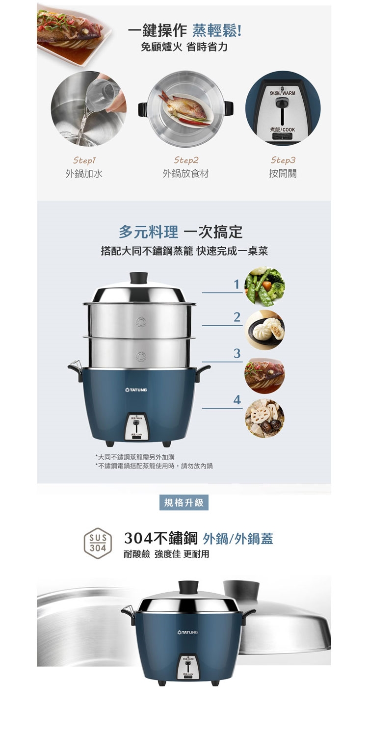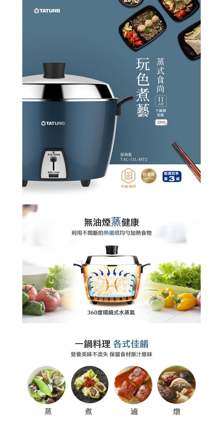 ◆ 220V 11人份電鍋深海藍