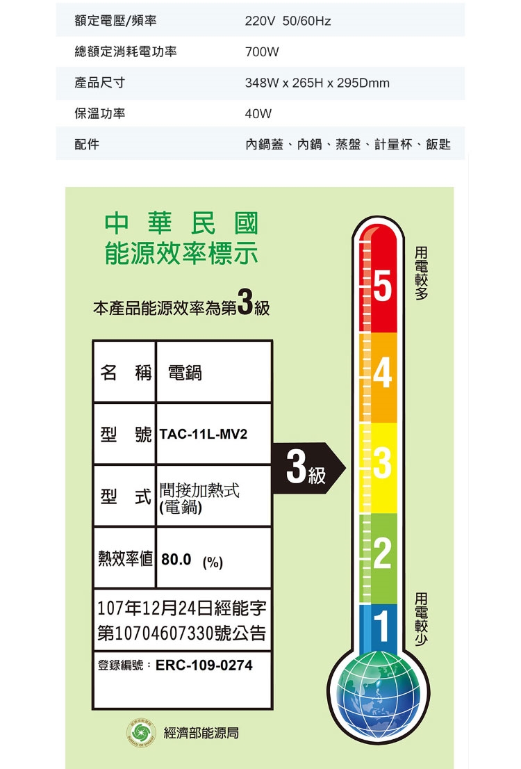◎ 能源效率:3級