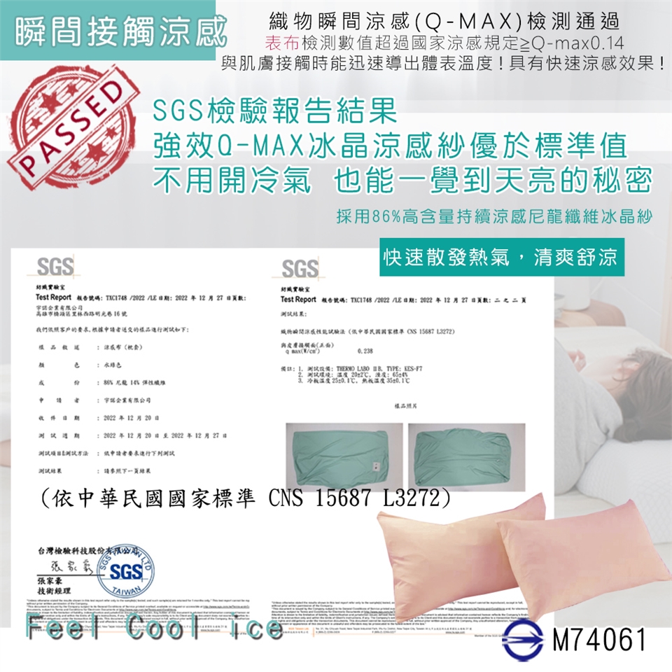 通過國家標準SGS認證才是真涼感!!春夏秋都適合使用的親膚涼感枕套!!您一定要擁有!