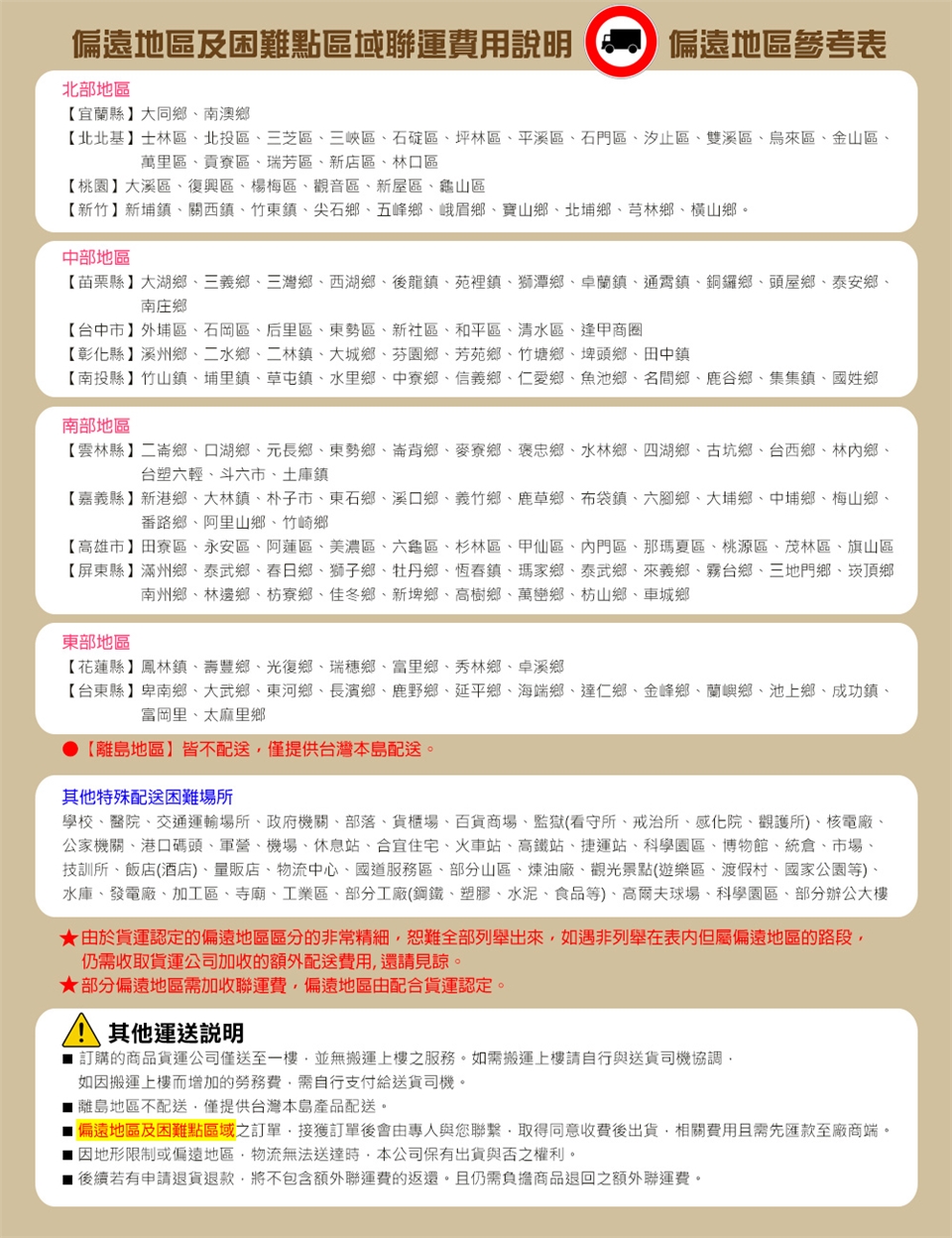 ◆配送限制: 偏遠地區及外島地區無法配送,請勿下單,謝謝。