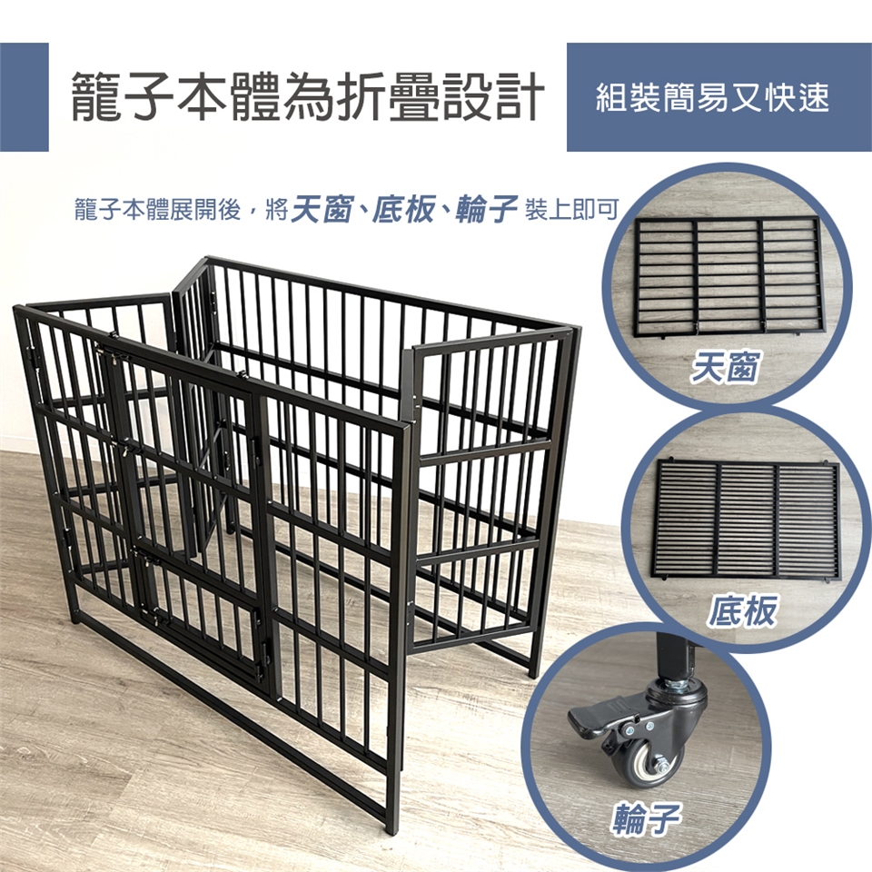 ◆此商品將籠子主體展開後,將天窗、底板、及輪子裝上,簡易組裝即可使用。