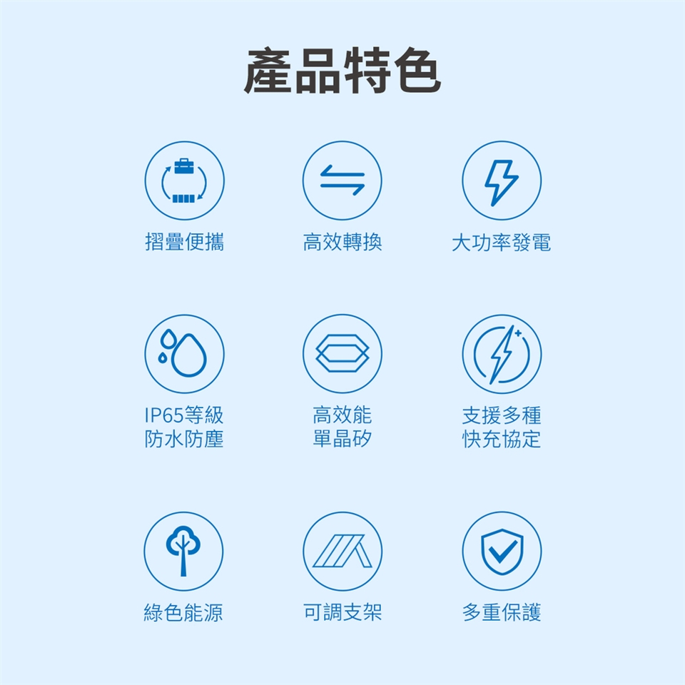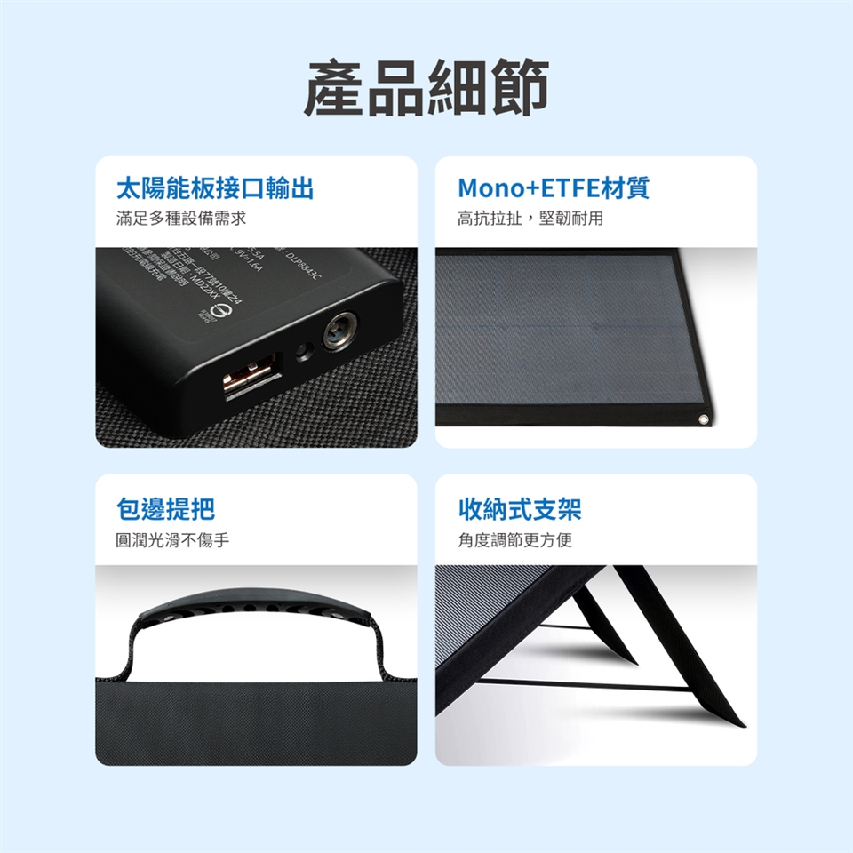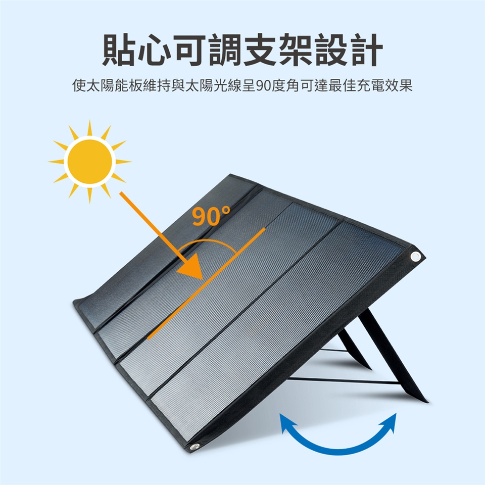 可調整支架貼心設計,使太陽能板擺放角度達到更好充電效果