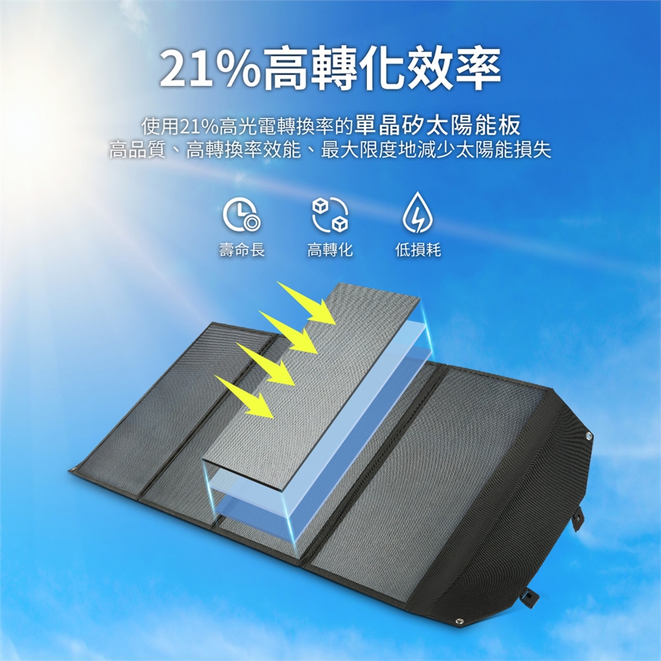 使用高品質單晶矽太陽能電池,擁有高達21%光電轉換率