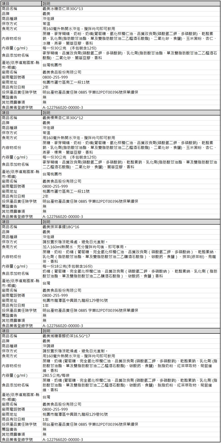 ★ 杏仁茶:遵循古法、嚴選素材;添加燕麥,風味口感再升級,使用高品質奶粉,不使用奶精