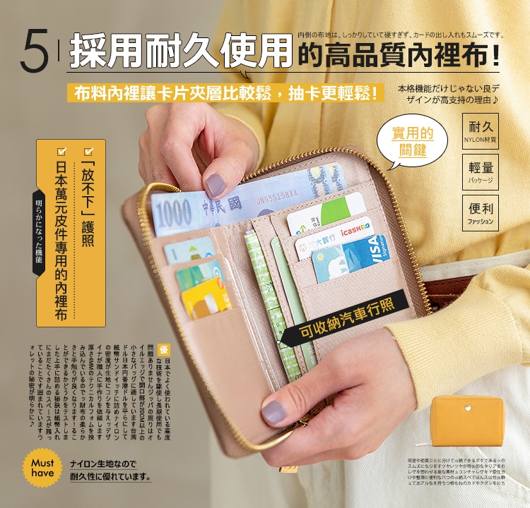 可否放置 汽/機車行照/駕照:可以 (含透明套也可收納)