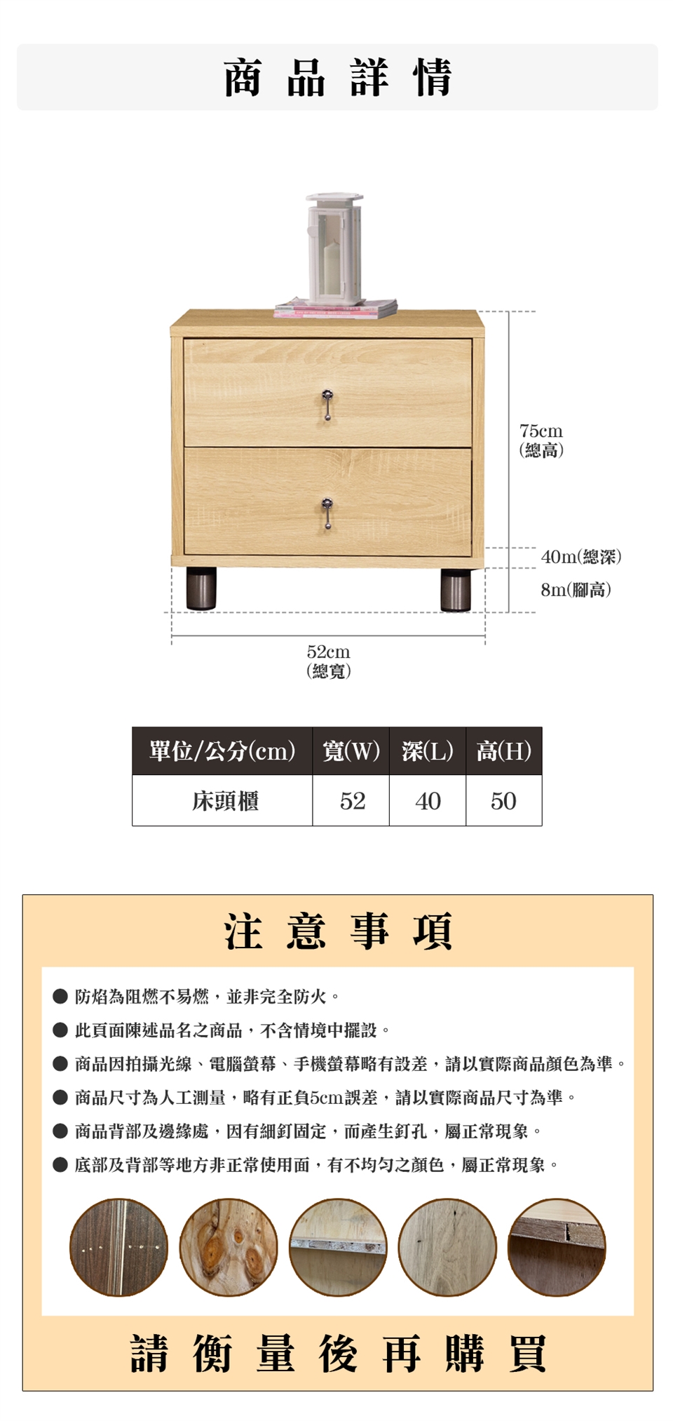 ※此賣場僅販售 簡約防焰二抽床頭櫃(邊櫃 收納櫃 抽屜櫃)※