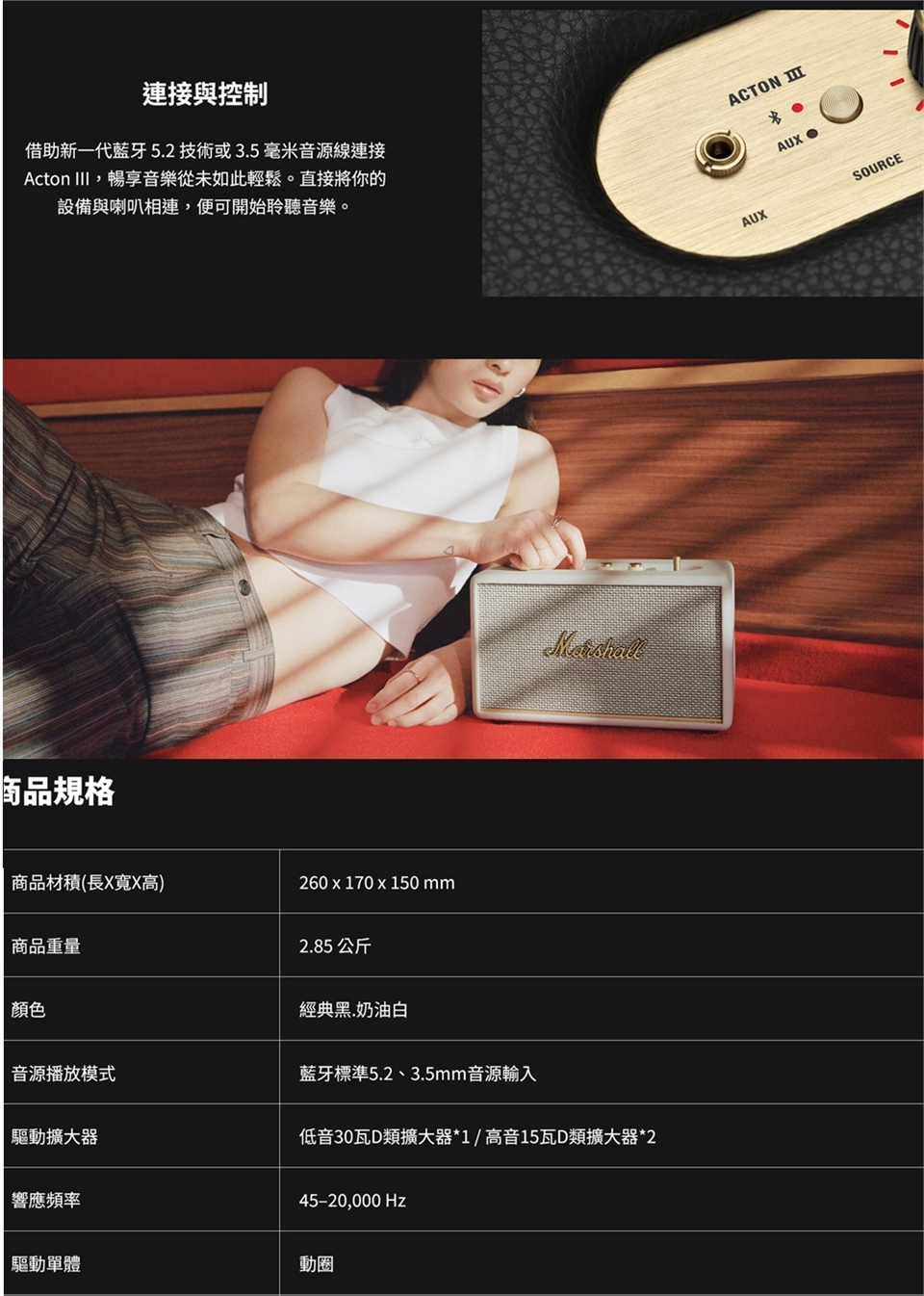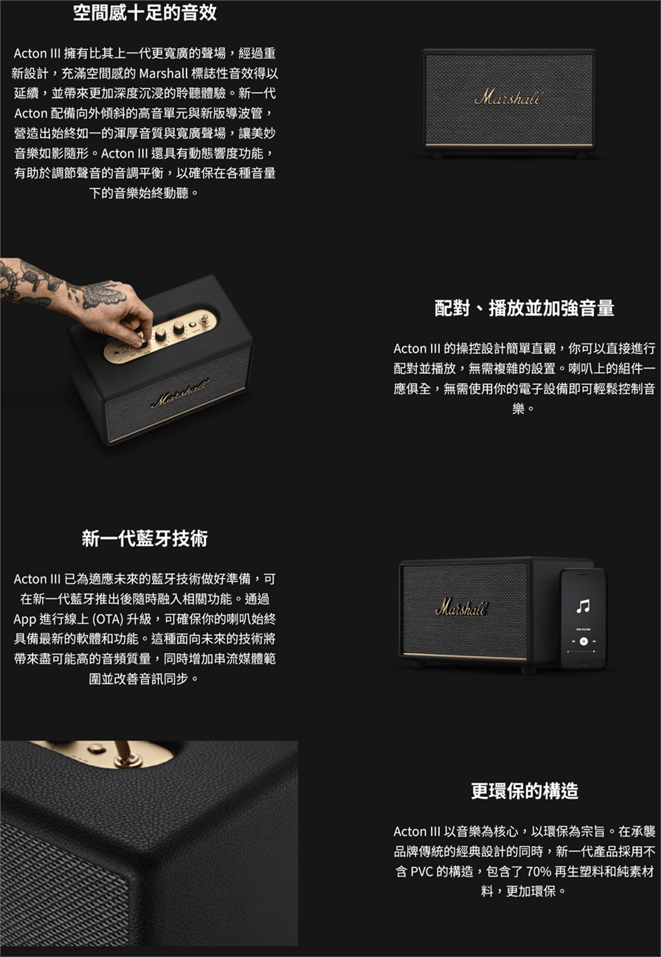 - MARSHALL 標誌性音質,空間感十足的音效