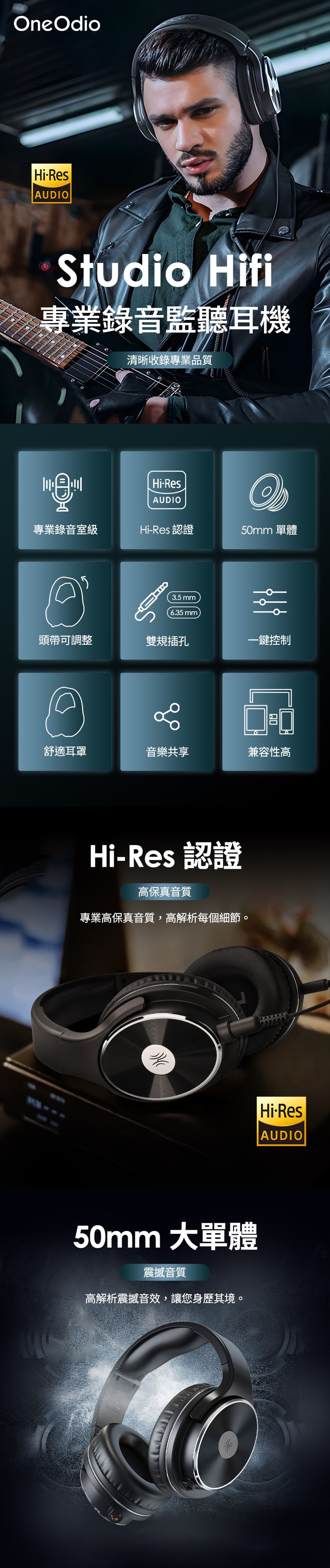 產品名稱:OneOdio Studio Hifi 專業錄音監聽耳機