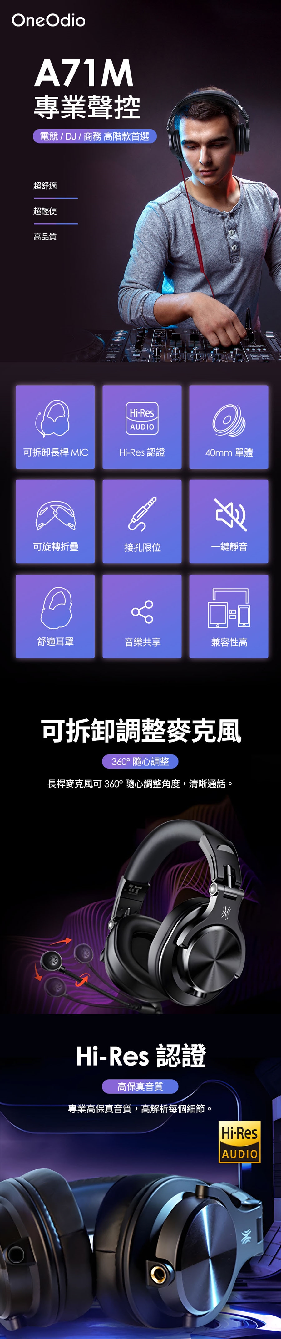 產品名稱:OneOdio A71M 商務電競有線監聽耳機