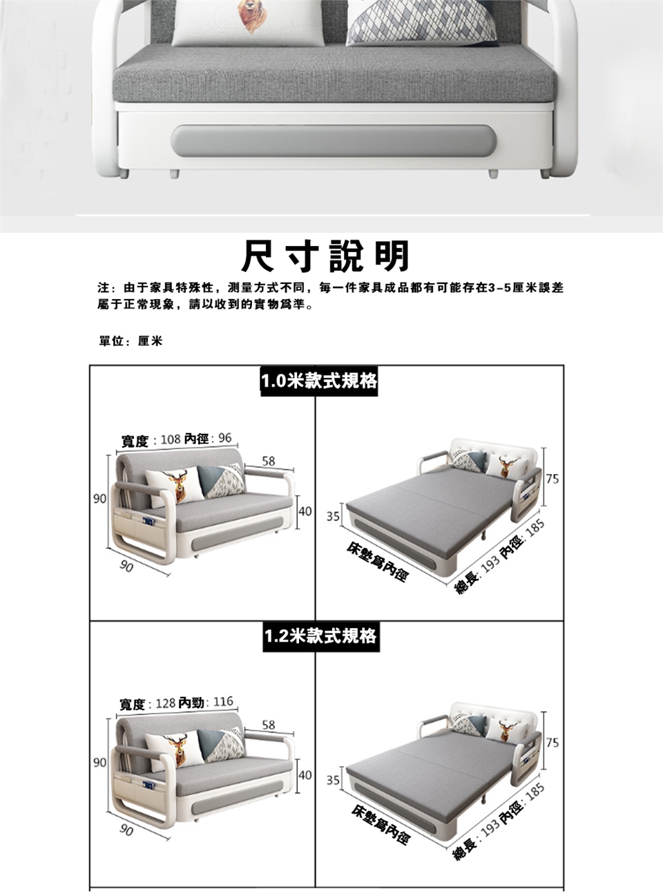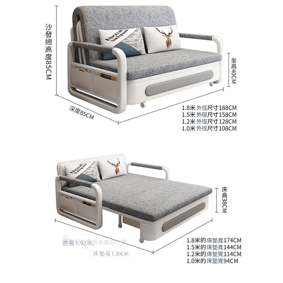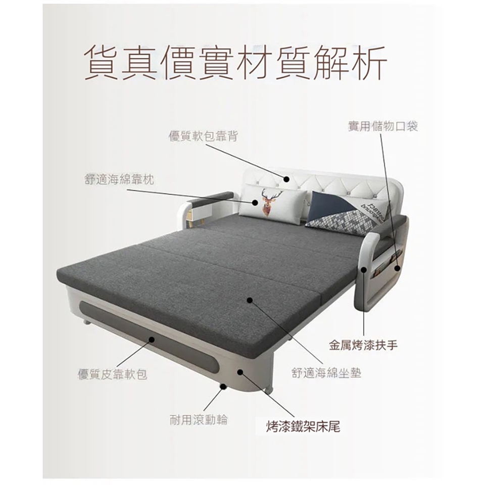 產品特點】 即是沙發也是床,實木條排骨,鎢鋼金屬框架,300公斤的承重力,穩固承托,不變形無甲醛釋放,家居放心使用,實木夾板隱藏儲物箱,收納儲物,為生活騰出更多空間。三種座包可選,滿足不同人群需求。 (海綿款)
