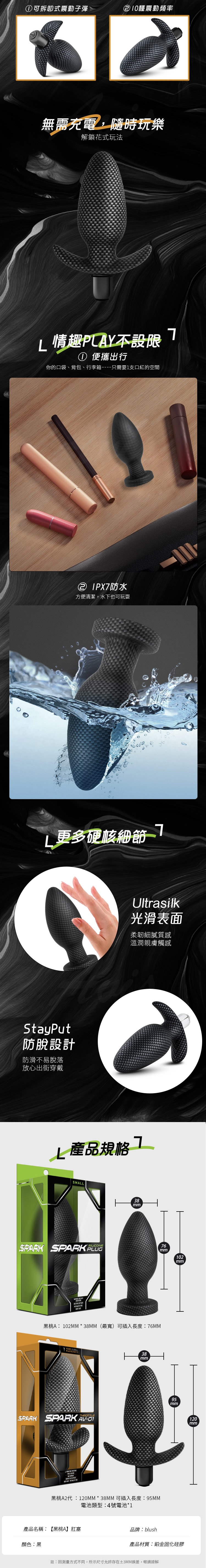 七大人體工學,挑戰極限。頭部採用錐形設計,融入體內,尾部底座流線順暢,完美貼合菊菊,帶來更深入的體驗,實現您的「無射」目標。尖端設計倍加護理菊菊,頭部錐形入體順滑,中段提高感受,圓潤體感令人滿足。底座防止過深入體內,並具防滑設計,確保使用的安全可靠。