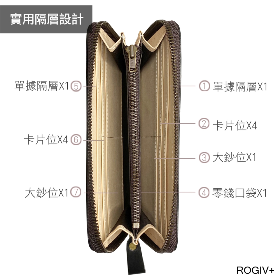 卡片位X8 大鈔位X2 拉鏈零錢袋X1 單據隔層X2