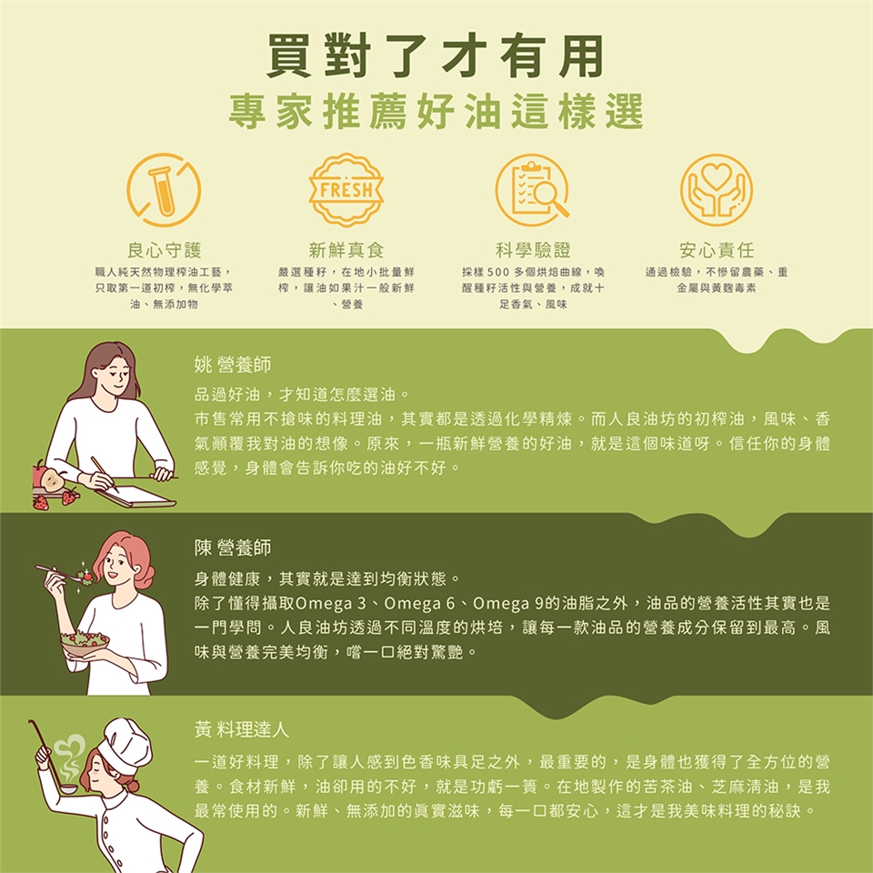 ✔️堅持小量生產,保持新鮮,讓油的風味像新鮮果汁一樣『新鮮、天然、真食』