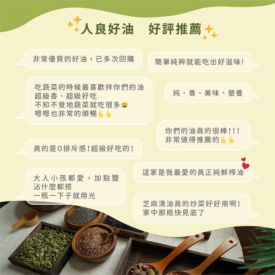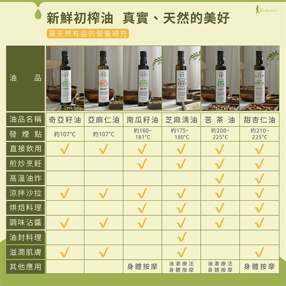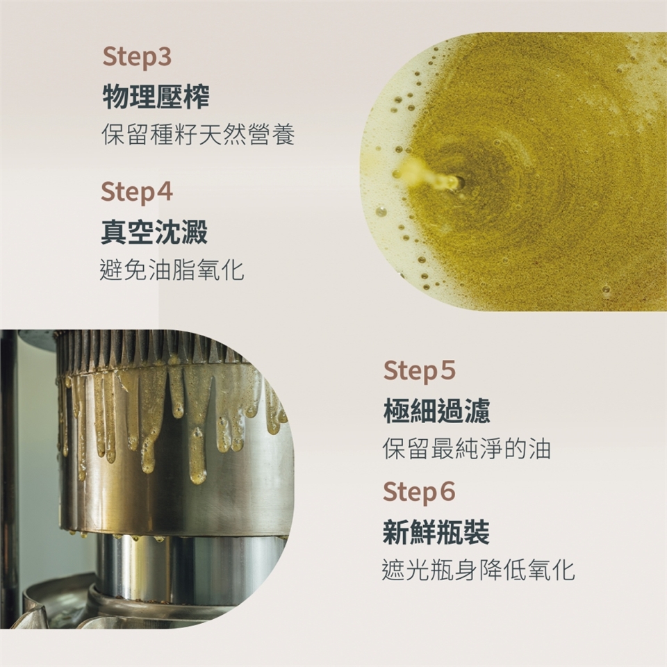 ✔️100%無添加、無萃油,只萃取第一道初榨油,保留『油』最佳的天然活動與營養。
