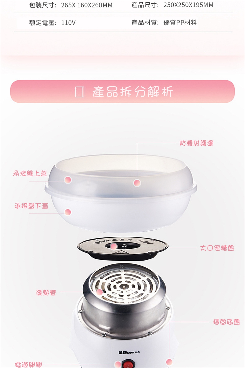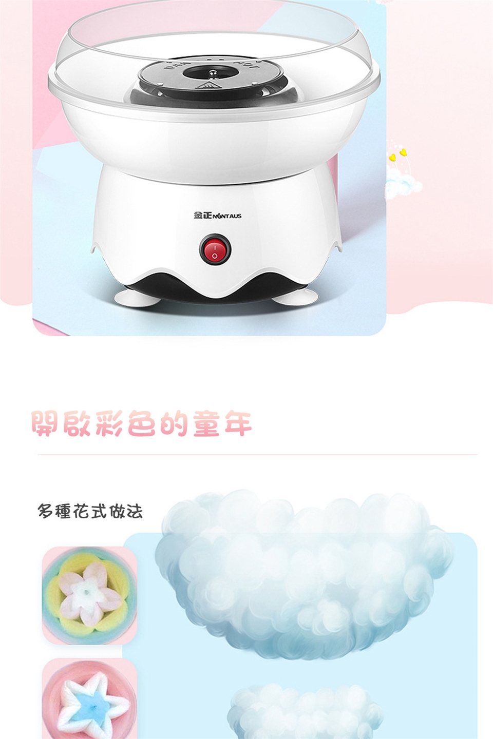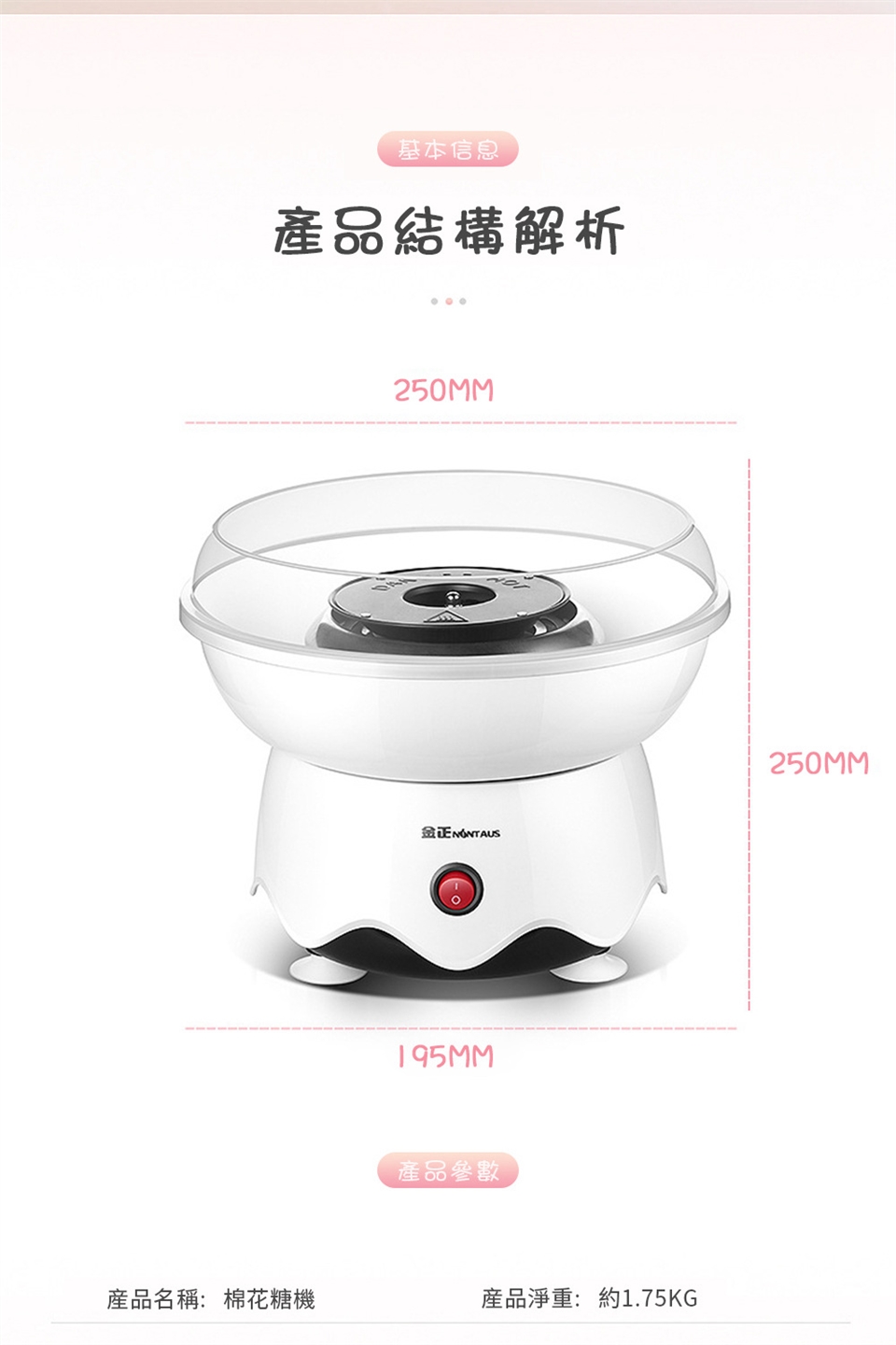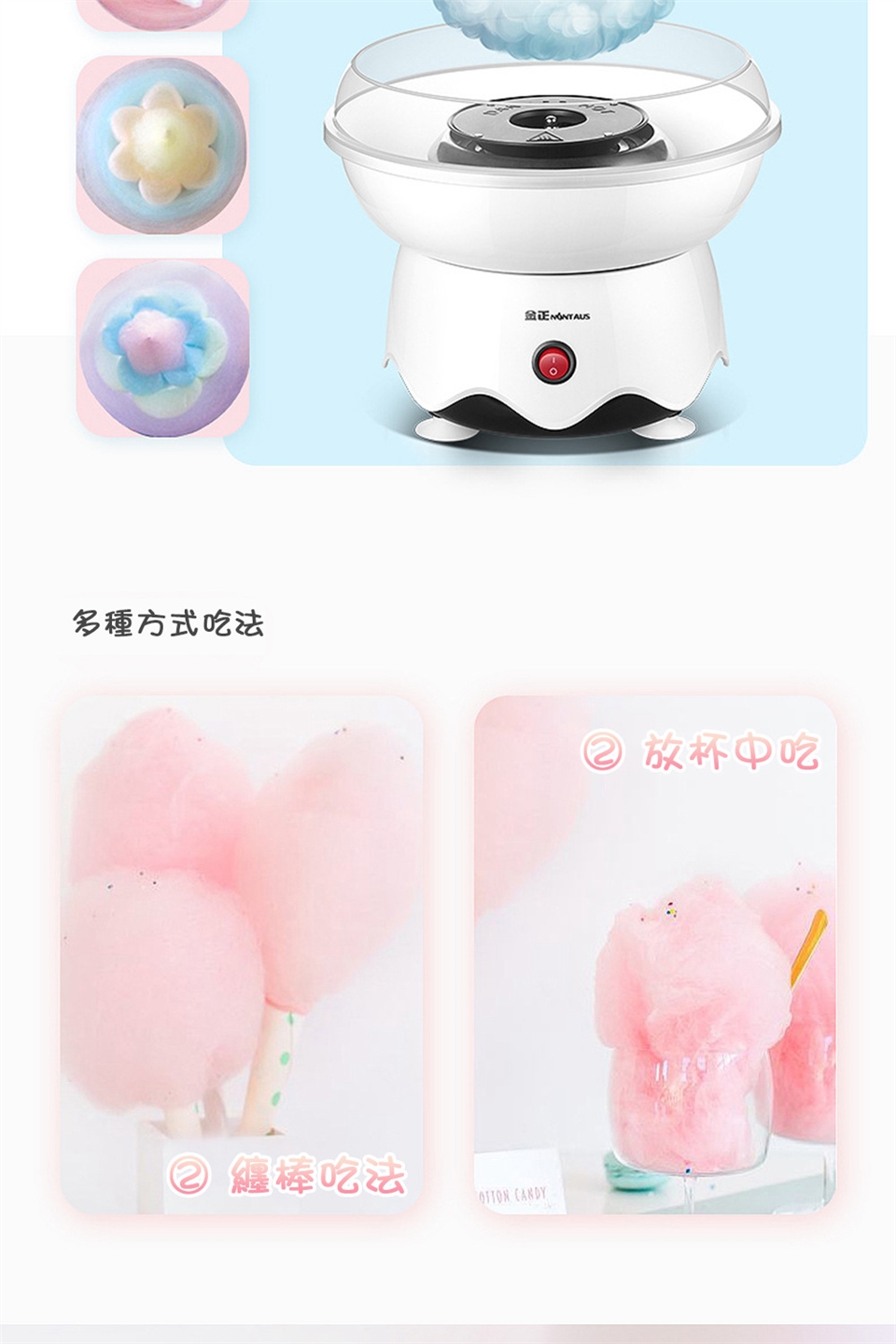 3.制作棉花糖時,放入糖粉時,需少量多次,不要把糖粉灑出放糖的容器外,以免糖掉到機子裡面發熱管上