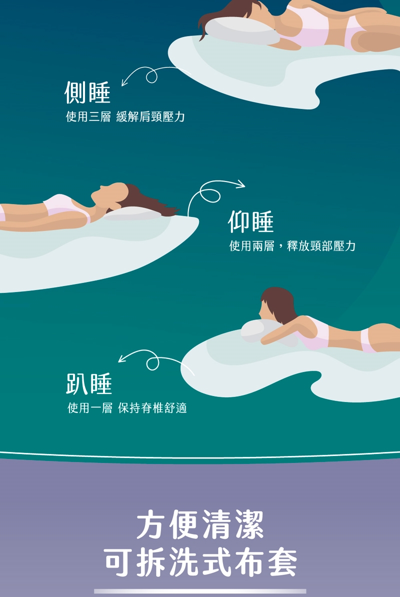 滿足各種睡眠習慣/三層枕芯 找到合適舒服的高度