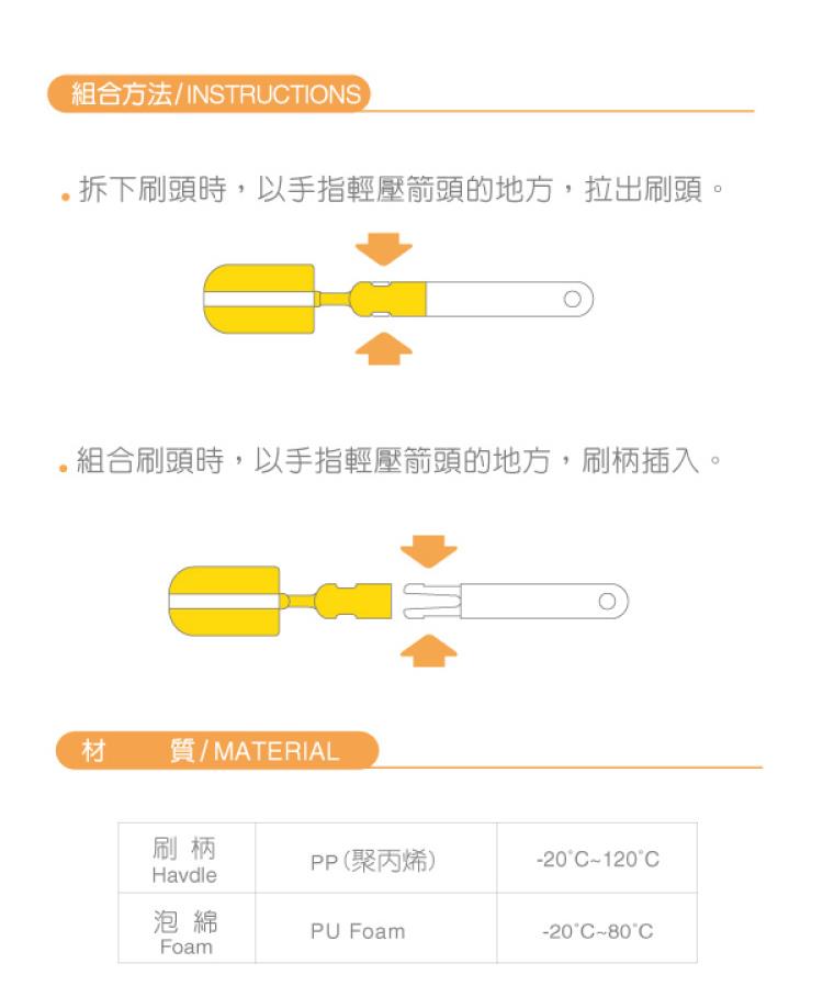 .可將使用過度而變型、損壞的組合式奶瓶刷頭換新柔軟的海綿。